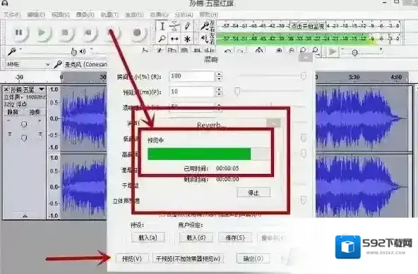 8、当更改了混响相关参数后,点击“预览”,确定是否更改到合适参数;