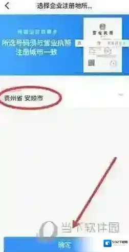 3、在打开的页面中,点击向下的箭头,选择企业注册地所在的城市。