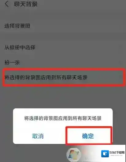 8、最后选择将选择的图片应用到聊天背景,然后点击确定就可以了。