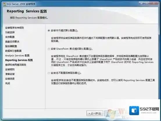 16、在报表服务配置中选择默认模式,用户可根据需求选择,如图所示。