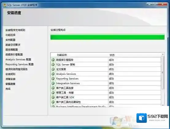 22、如图所示,当安装完成之后,SQL Server将列出各功能安装状态。
