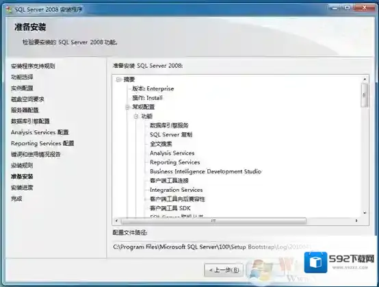 20、当通过检察之后,软件将会列出所有的配置信息,最后一次确认安装,如图所示。点击“安装”开始SQL Server安装。