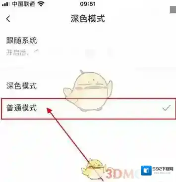 4、进入深色模式页面之后,然后点击勾选普通模式即可完成。