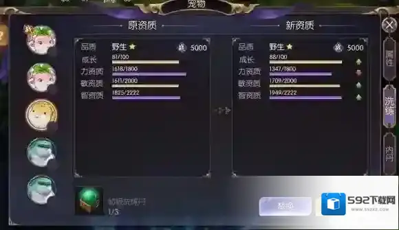 3.获得萌萌的宠物但是资质不够好怎么办?可以通过洗练让萌宠迅速提升资质。