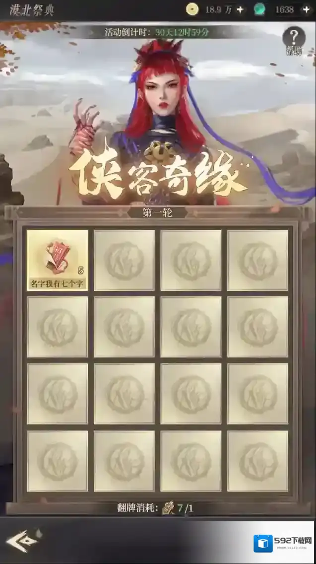 茫茫漠北,只待有缘人相聚!在侠客奇缘中,玩家消耗“战功积分”翻开卡牌可获得随机奖励,少侠们有机会在翻牌中获得侠客降臣。当所有卡牌被翻开后,将自动开启下一轮翻牌,总共可进行2轮。