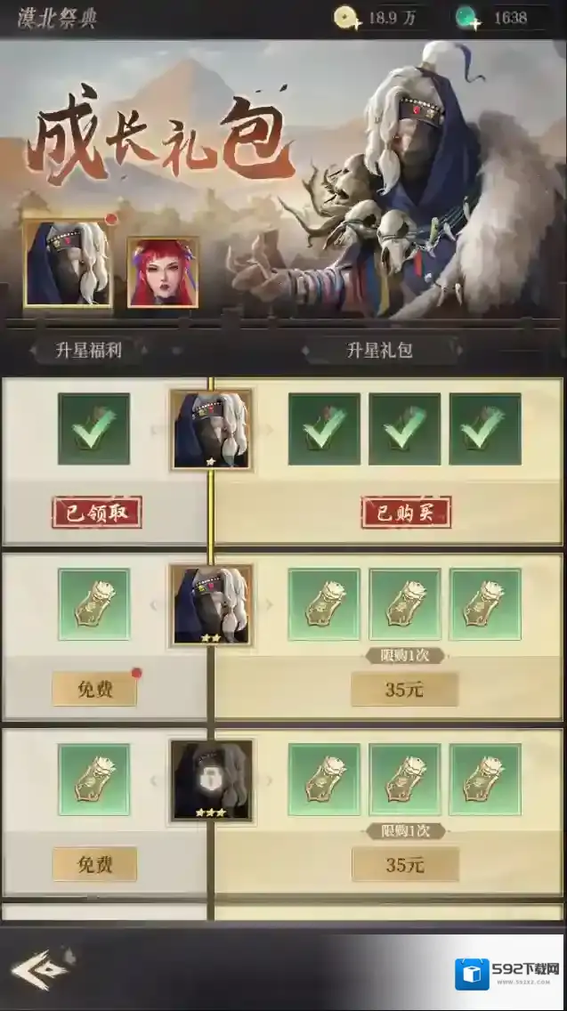 侠客成长,福利相助!在成长礼包活动中,玩家将指定侠客培养到指定星级,便可获得对应的奖励。同时,还能解锁1个物超所值的升星礼包。