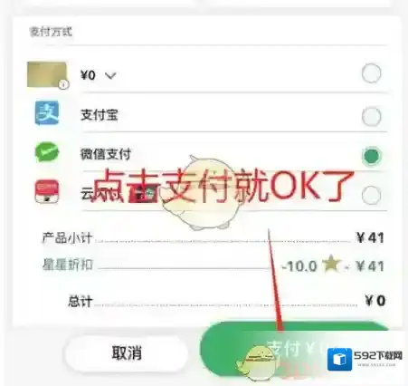 2、完成点单后,直接到结算支付页面,选择使用星星,如图;
