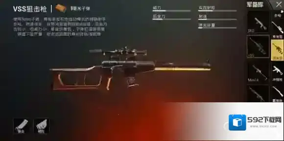 VSS,这把枪别的暂且不提,就凭自带四倍镜和消音就已经可以说是打野玩家的专属了,更何况使用的9mm子弹遍地都是,但是要记住,这把枪单发伤害很低,弹道下坠的很严重,所以在射击的时候需要预瞄和抬枪,距离较近的时候还要考虑压枪的问题,但是一旦用顺手了,这把狙的威力是非常强大的,如果想成为一个好的一个打野玩家,一定要练好这把狙。