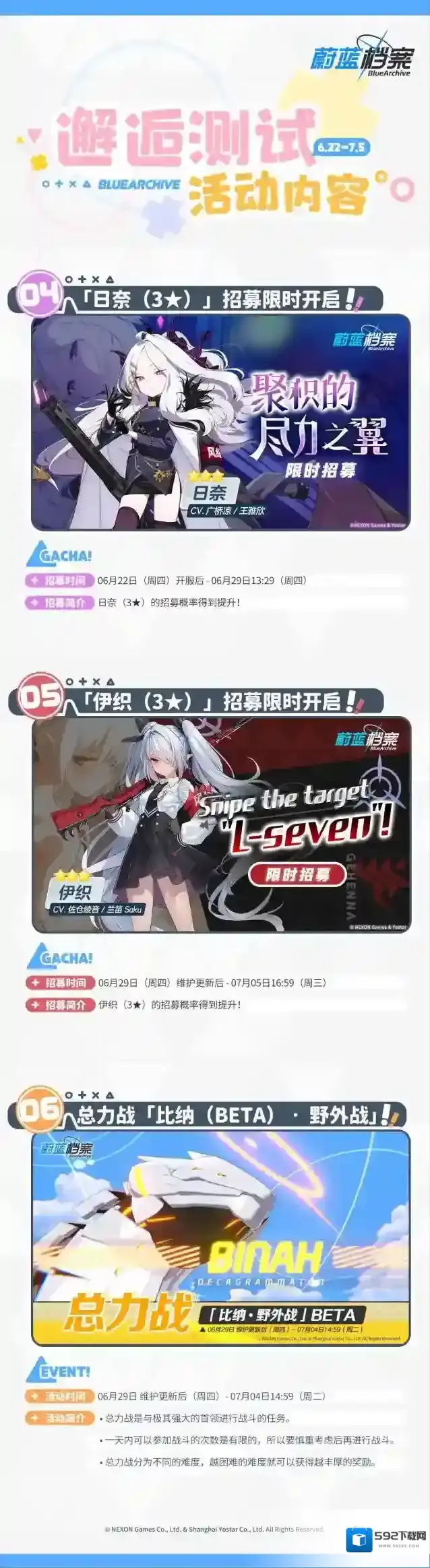 「欢迎连接什亭之箱,老师。」《蔚蓝档案》已于6月22日开启测试!以下是本次测试活动内容汇总。※本次测试版本为开发中版本,不代表游戏的最终品质。