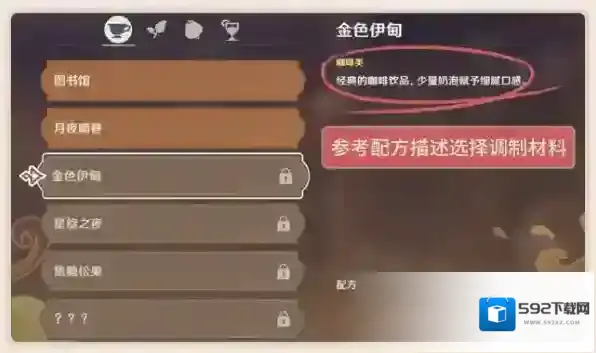 首先,在调制饮品的时候,需要选择合适的材料,玩家可以点击调制界面的“配方”键,来查看饮品所需的材料。