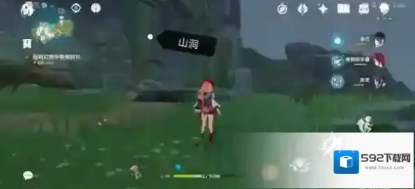 顺着路走到山洞里(里面有一个幻形,跟到宝箱处点燃火把可以开秘境旁边的紧致宝箱,开完宝箱回到山洞)