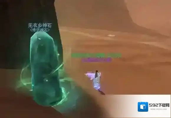 重新回到朔风漠-无衣乡-血河摊神石处,向地图的西北方向走,第七个沙丘就在眼前(大致坐标为东1541,南1008)。