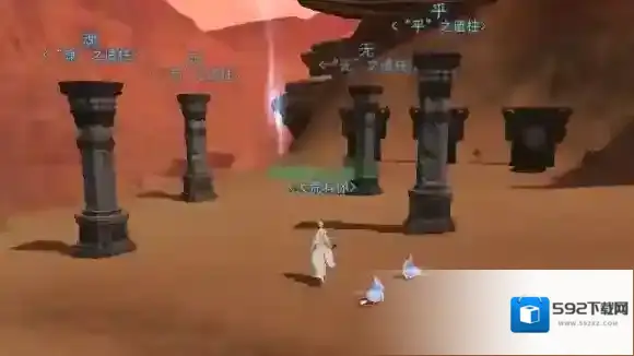 接着寻找第五处石柱位置,我们可以先传送到神石红堡营地-安营点,往西北方向(即地图左上方)走,在遇到npc狄青松时选择右边岔路继续走,在营地外右侧就能看到四座石柱(坐标大约为东674,北297)按顺序点击石柱:魂乎无西,激活后触发英雄之魂并获得奖励。