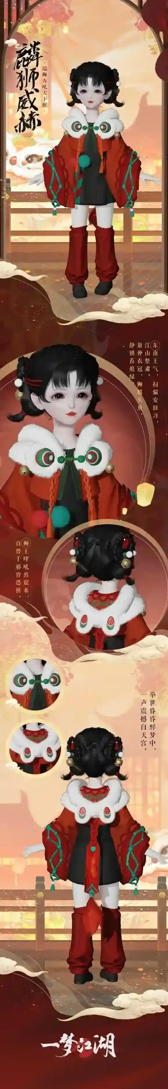 倾城时装·锦筵华觞华贵上新,民间宝藏醒狮联动时装麟狮威赫抢先穿;醒狮系列外观“叮当”、“狮狮如意”携玩具“跳跳狮”共贺元宵;更有稀世悠游·迅霆玄豹霸气上新。