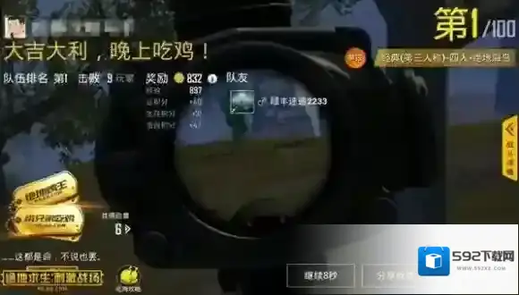果不其然,队友在仓库位置轻松击倒对空投垂涎欲滴的目标。而后又在炮楼内成功摸到了安全区中心点的两队交火的敌人并成功击杀三人。此开始到现在我们因为处于安全区边缘基本没有与任何敌人正面交战。