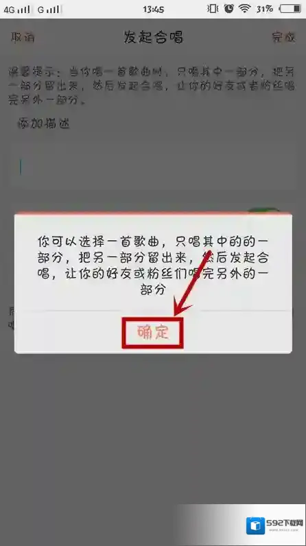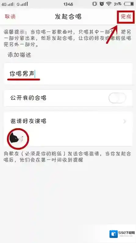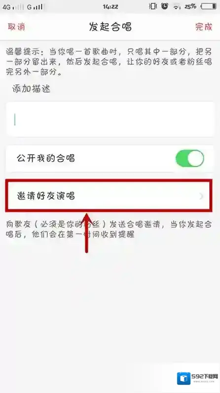 在该界面可以选择邀请好友演唱 还可以添加描述