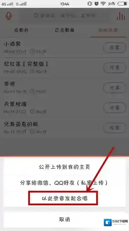 然后在界面出现的选项中选择 “以此录音发起合唱”