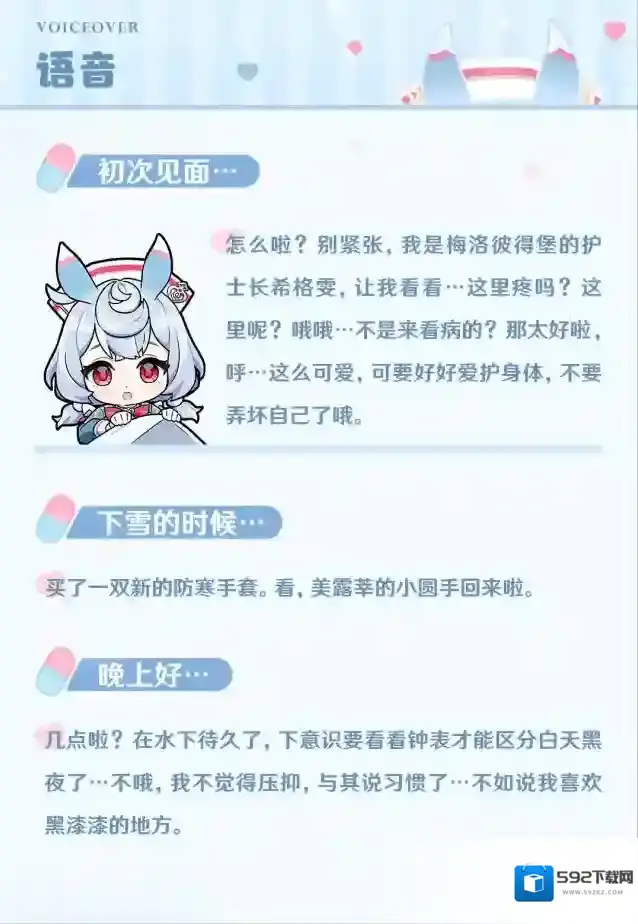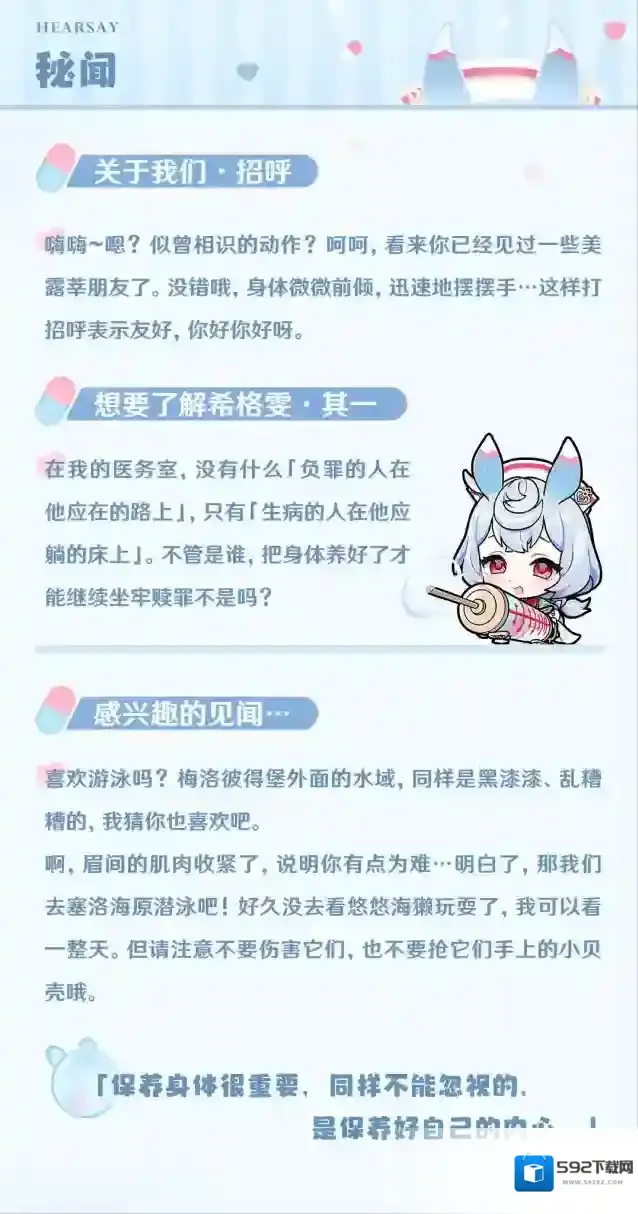 旅行者好呀!今天为大家介绍的角色是梅洛彼得堡的美露莘护士长,希格雯。今天的她,也在平等地关爱着海底监牢中的每一名罪人哦~