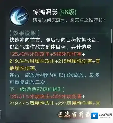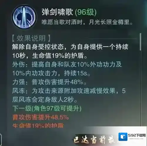 弹剑啸歌:华山的核心技能,打本能提升队友攻击。pk能解控能上盾,PK的时候慎用;