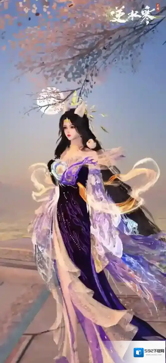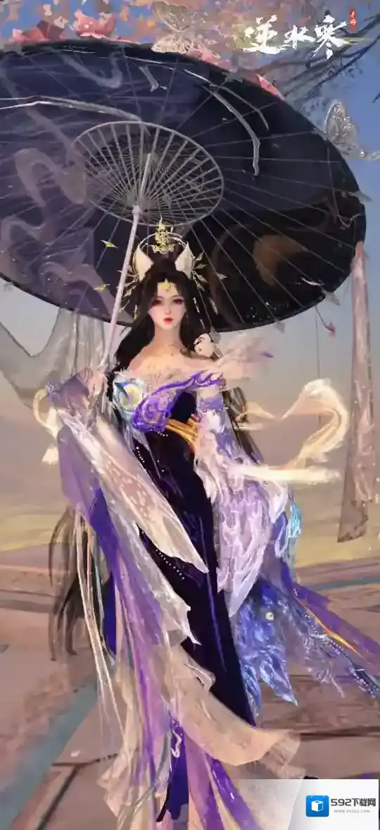 衣带轻飘,仙气弥漫,紫色系的搭配更是增添了神秘感,伞下凝眸,更是温婉动人。