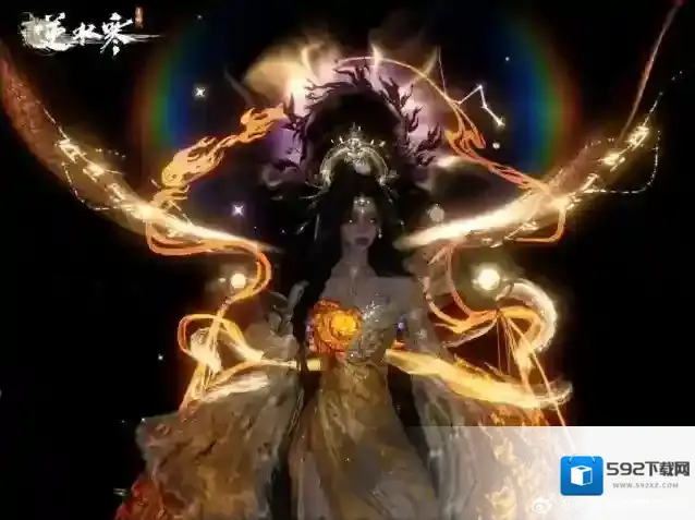 伴随着漫天斑斓的金光,神女降临世间,抬手轻触大漠残阳的刹那,便唤醒了人间烟霞无数。