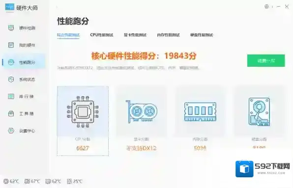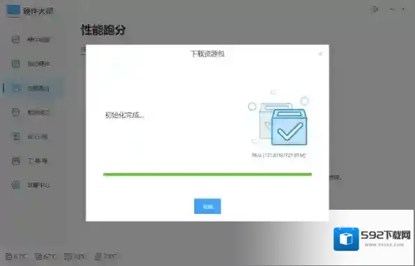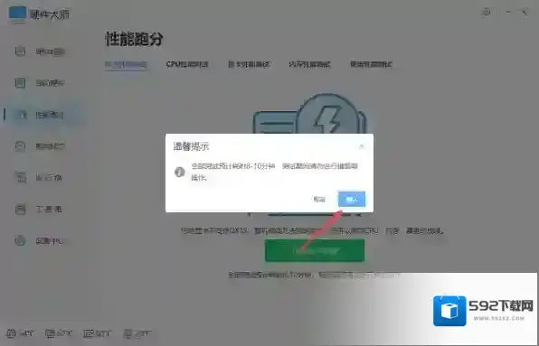 第三步,功能安装成功后,点击该功能,然后我们就进入到硬件工具界面当中了,点击界面中的开始跑分评测按钮。