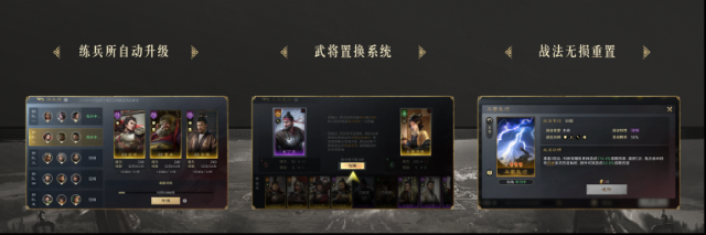 首先,《三国:谋定天下》为玩家提供了一揽子减负计划,自动铺路、一键预约攻城、练兵所升级、武将置换系统、土地开发等玩法系统全面保养玩家的“肝”。其次,坚决不逼氪,游戏中角色获取五连抽 390 黄金(20 抽必出橙,每日免费1次,半价1次)、彻底抛弃小卡包出新卡设定、取消建筑升级等待时间仅需消耗资源。