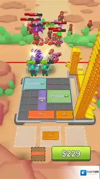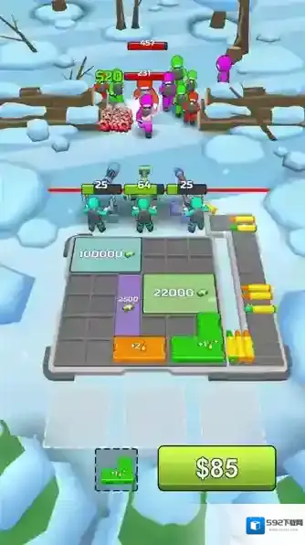 A:通过击败敌人获取金币,购买武器箱并进行合并,可合成更高阶子弹。同时升级军火库能永久增强基础火力与射速。