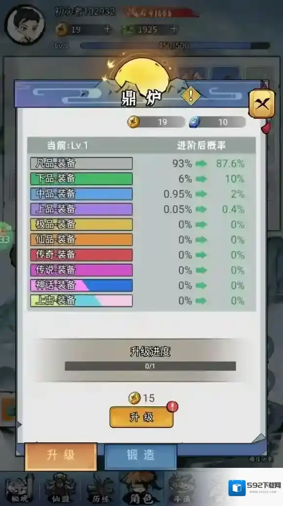 4、点击炉子下方等级,可以将鼎炉升级,提高稀有装备爆率。