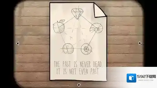 (1)、木桌视角:紧接前面的攻略,按照窗户上发现的(纸)的提示,将(蓝宝石)、(苹果)、(硬币)、(眼睛)、(贝壳)按对应的位置摆放好,形成了一个五角星阵。