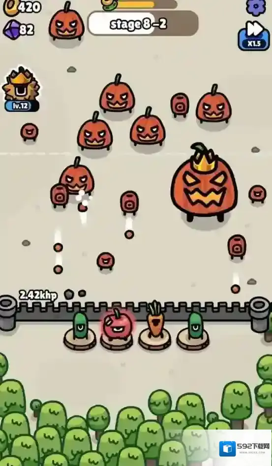 游戏的玩法很简单,上阵水果英雄守护你的城堡就可以了,这些英雄不需要玩家来手动操作,它们会自动攻击出现在范围内的敌人。游戏中的水果英雄很多,消耗金币就可以召唤,用获得的钻石解锁更多的位置来上阵更多的英雄,通过一个又一个的关卡来体验新的乐趣吧。