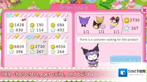 2、在这里你将会见到众多三丽鸥的人气角色,和他们一起建设好这座童话般的主题游乐园,享受建造的快乐过程。