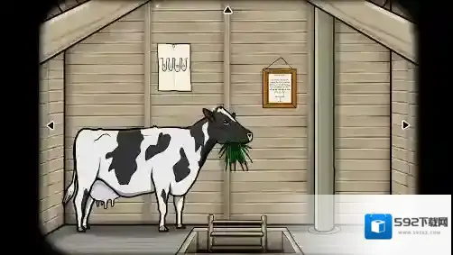 11、阁楼—奶牛视角:将(草)塞到奶牛的嘴里,点击几次让它吃下去(不然挤不出奶);将(锅)放到奶牛的肚子底下,根据墙上的纸头我们可以得知奶牛的每个奶头代表的符号,根据相框上的符号我们可以得知按照对应符号挤奶的顺序,按图中的顺序点击奶头,牛奶挤满了整个锅,获得(有牛奶的锅)(牛奶是将正确的顺序按完后一次性挤出来的)。