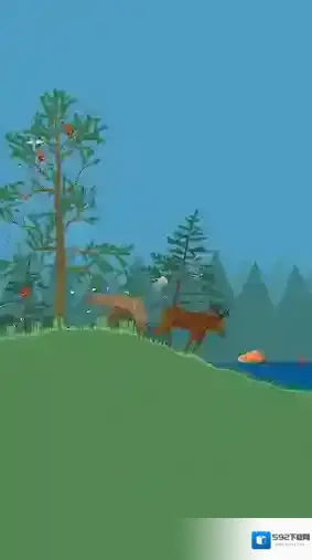 点击动物会触发不同的行为,影响森林的生态系统:驼鹿排便,为土壤施肥。田鼠啃食树根,破坏树木。狐狸会捕猎其他动物。