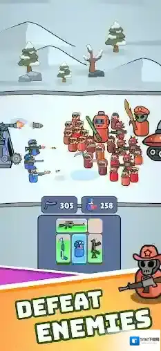 在战斗中,我们需要合理的部署自己的阵容,并通过合成的方式来解锁更多强力的武器,让自己的士兵们能够拥有更强大的战斗力,消灭更多的敌人!除了局内的各种部署之外,局外也可以对武器、技能、士兵进行升级,提高整体战斗力,去挑战更多困难的关卡!
