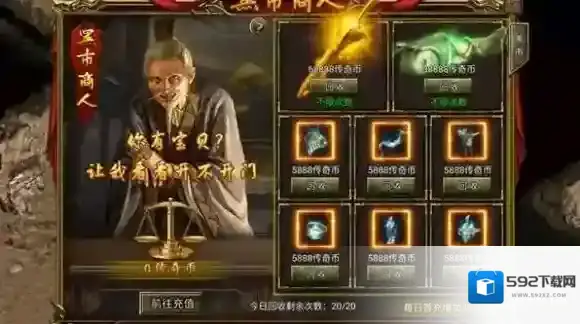 通过黑市商人回收装备,获取传奇币,这些传奇币可用于与战力提升相关的消耗。