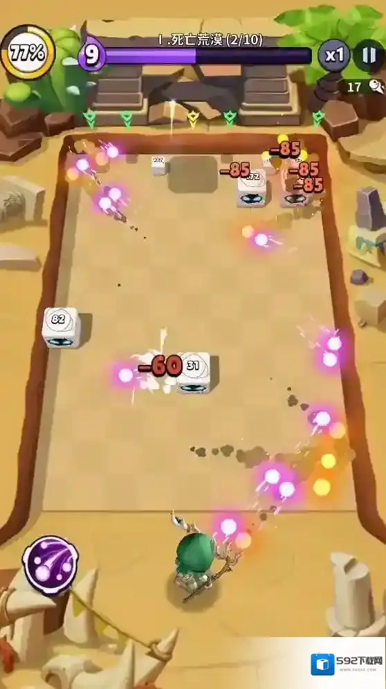 游戏中你需要选择不同的英雄来闯关,通过选择发射角度来射出不同的子弹摧毁砖块,利用子弹的弹射效果来摧毁不同位置的方块。解锁各种强力技能提升你的战斗力,完成不同的任务来体验新的乐趣,不断摧毁更多的方块来体验最有趣的闯关过程。