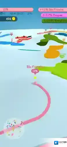 2、通过灵活的走位和策略的操作来圈出更大的领地,不断扩展你的颜色,赢下比赛获得丰富奖励。