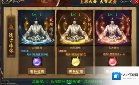 提升太阴、纯阳、苍天等属性体魄,能分别增加生命、攻击、防御等属性。