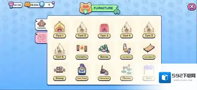 你将在游戏里帮助小青蛙管理这个露营地,通过放置不同的设施来增加露营地的人气,通过吸引更多的顾客来解锁不同的装饰,发挥你的想象力来打扮你的露营地,不断经营管理让你的露营变成世界上最美最豪华的露营地。