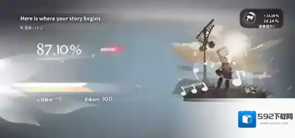 3、每成功通关一个故事章节,即可解锁一首新歌曲。左下角设有难度提示,点击即可开始演奏。