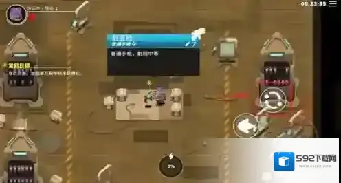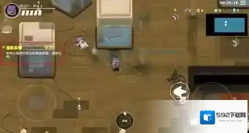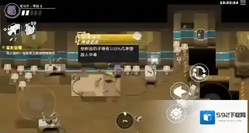 7、拾取武器后,游戏界面右侧的圆盘将发挥作用,点击可以发射子弹攻击敌人,滑动可以调整攻击方向;