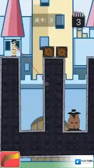 2、你要确认自己枪里有几颗子弹,然后瞄准位置,等位置弄好就可以点击左下角的枪支图标用来开枪打倒敌人。