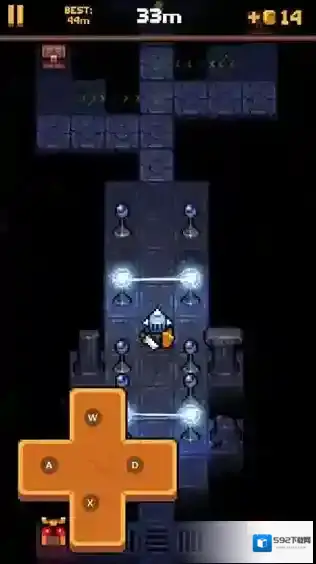 3、通过橙色按钮操纵角色进行移动,在冒险的过程中尽可能获得更多的金币。