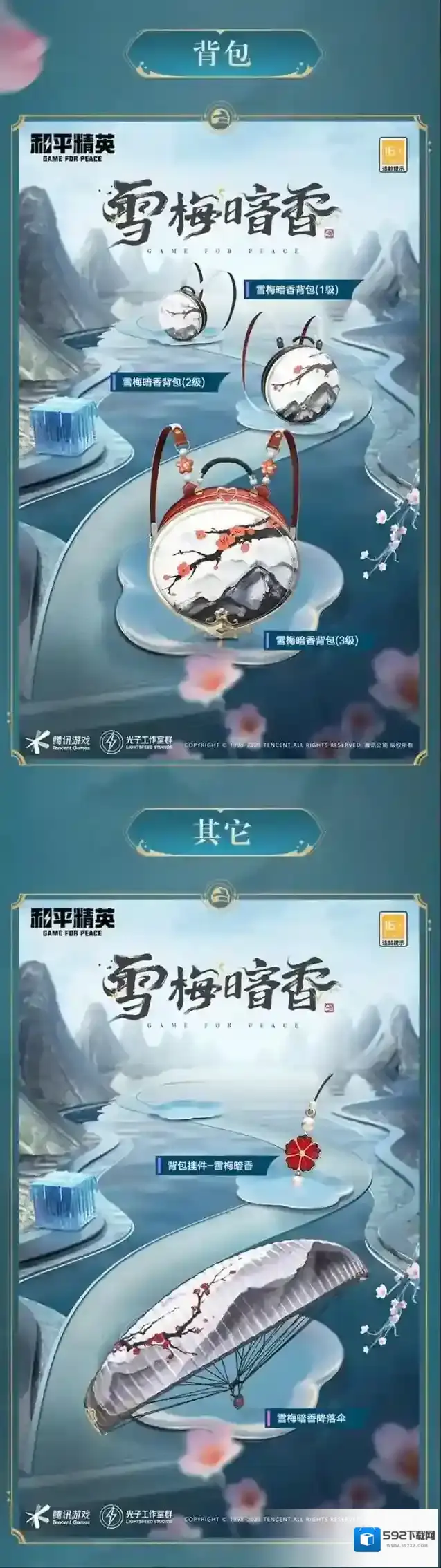 6、联动道具皮肤如下,包括飞行器、背包、枪械、头盔、背包挂件、降落伞等。