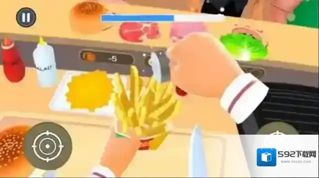 2、通过左右滑动屏幕控制移动方向,依据左右操作按钮,准备制作餐食。