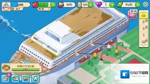6、不断获胜更多的金币来修复游轮的其他区域,吸引更多的顾客来打造最棒的豪华游轮。