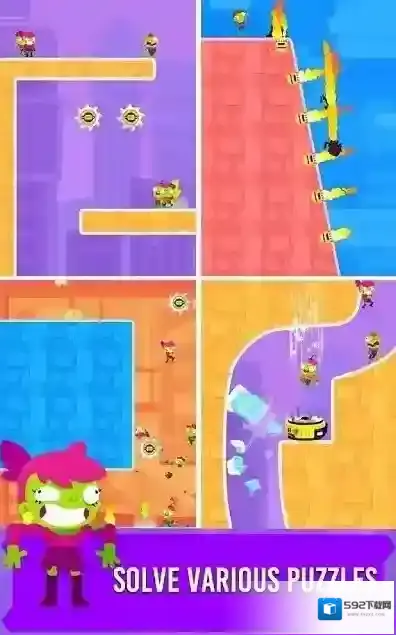 1、机关陷阱设计:各场景含多种互动机关,如实验室的旋转齿轮,工厂的喷火装置,考验反应与操作能力。