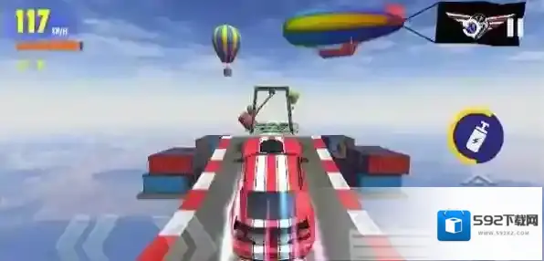 2、在高空赛道,关注左上角速度、状态,避集装箱,借加速冲跳台,利用浮空段调整,稳落地。