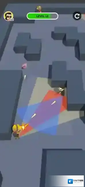 3、探查半径机制:敌人与玩家均有探查半径,只有进入范围内才能发起攻击,且攻击会吸引其他敌人,增加了潜伏与策略的重要性。